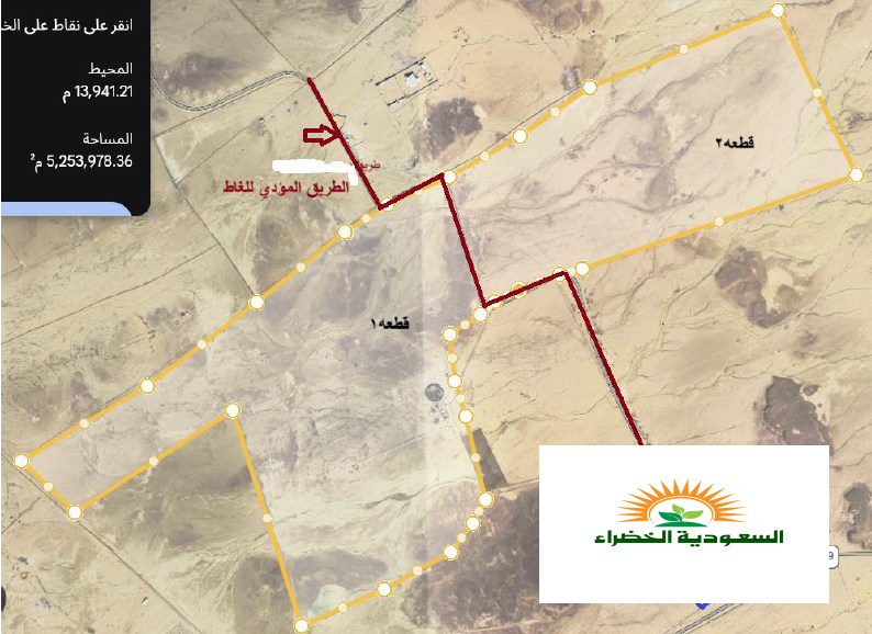 المساحة الإجمالية: 5,253,896 متر مربع (مقسومة إلى قطعتين بصك إلكتروني واحد)